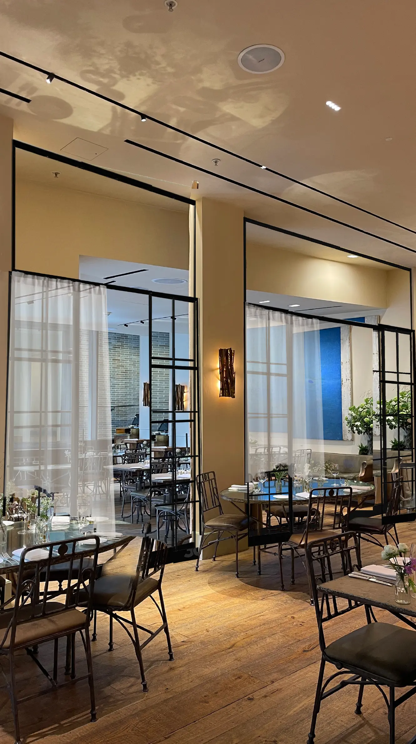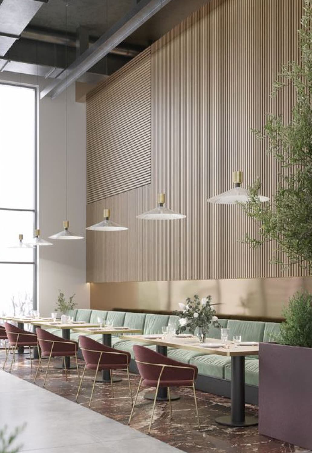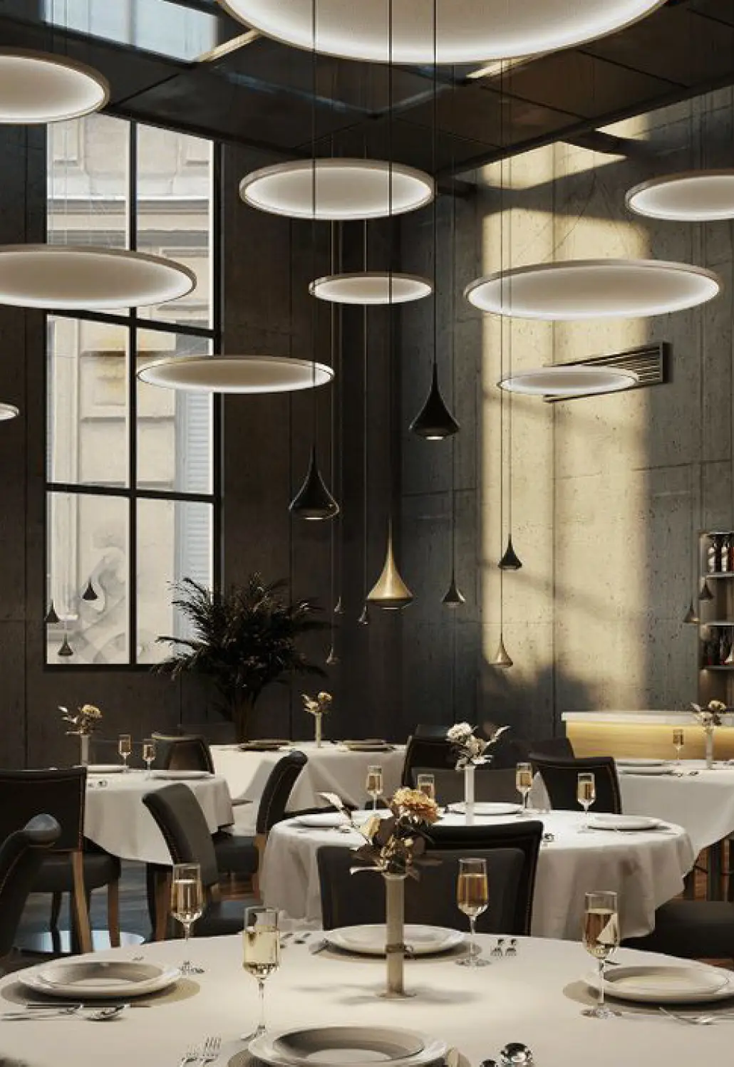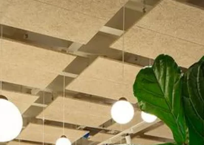 Acoustic ceiling tiles are designed to absorb sound, reducing echoes and minimising overall noise levels in a room. This property is crucial in creating a quieter and more comfortable environment, especially in spaces with high ceilings or hard surface. Coming in various styles, textures, and patterns they can blend seamlessly with the overall interior design of space. Acoustic ceiling tiles can be painted in acoustic paint that can camouflage the ceiling to the color scheme of the restaurant.