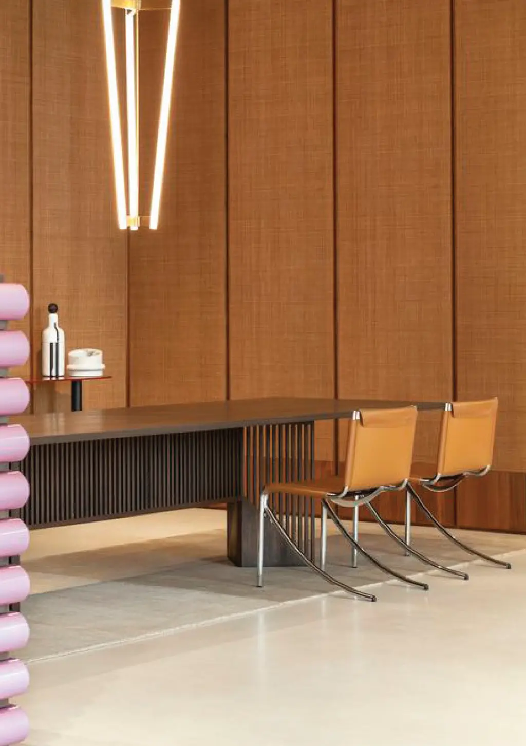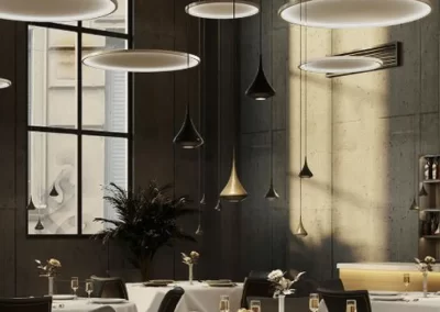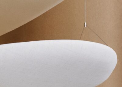 Ceiling pendant acoustic lights are versatile fixtures that serve a dual purpose by combining aesthetic illumination with effective acoustic solutions. The fixtures are equipped with acoustic materials or designs that contribute to sound absorption. This helps in reducing echoes, minimising reverberation, and improving the overall acoustic quality of the room.