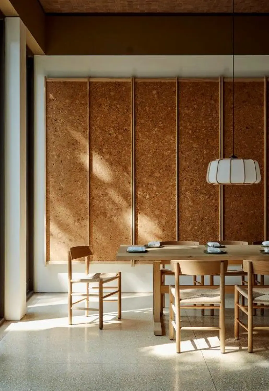 Cork functions as an acoustic solution due to it’s natural sound-absorbing properties. It dampens sound, reducing echoes and noise. In addition to it’s acoustic benefits, cork can enhance aesthetics when used in wall panels, offering a visually appealing and sustainable design solution when trimmed with high-end finishes. The natural texture and warmth of cork create a visually pleasing and functional element in interior spaces, making it an attractive choice for both acoustic performance and aesthetics in wall panel applications.