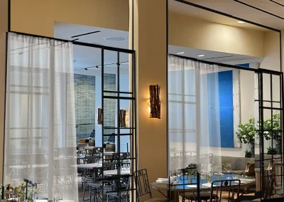 Transparent acoustic curtain fabrics are specifically designed to combat sound pollution in open-plan environments, these solutions enhance connection while mitigating negative health effects. These acoustic materials reduce echo time, absorb sound, and enhance comprehension. They are particularly effective in spaces with sound-reflective surfaces like concrete, glass, and marble, softening both reverberation and the overall atmosphere.